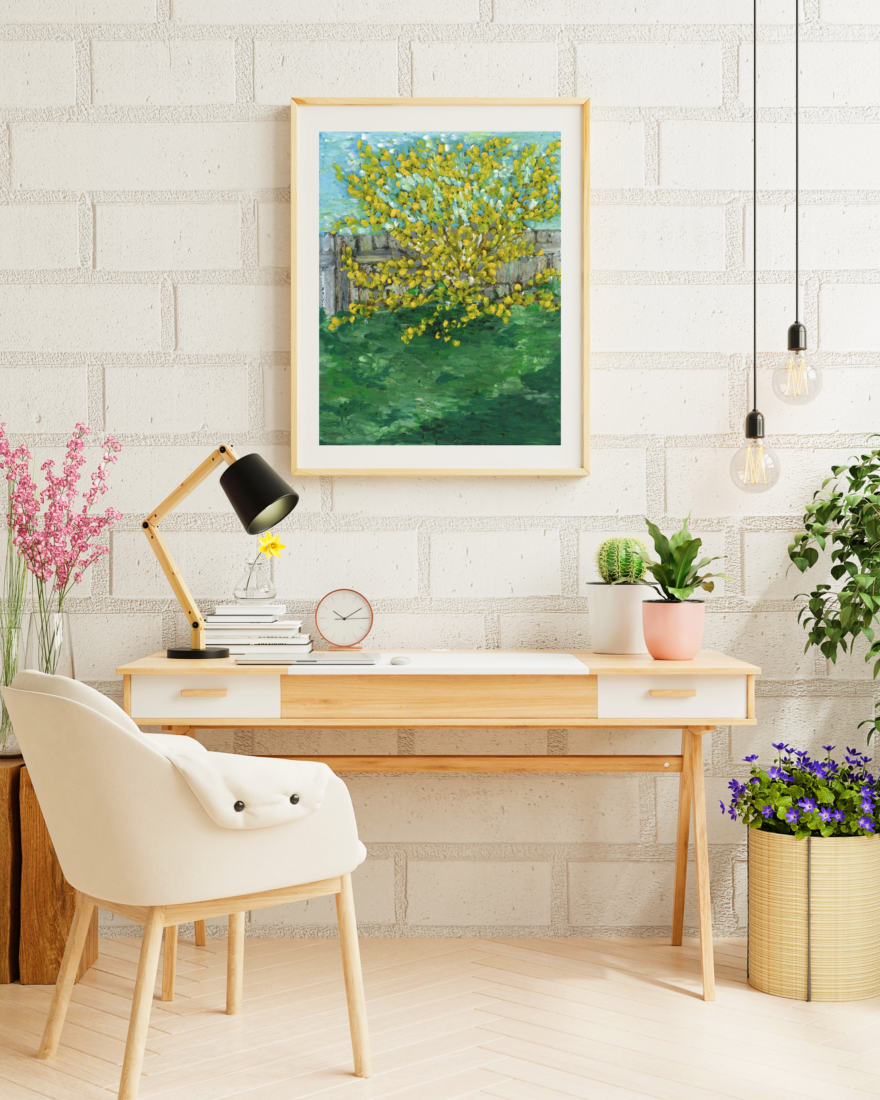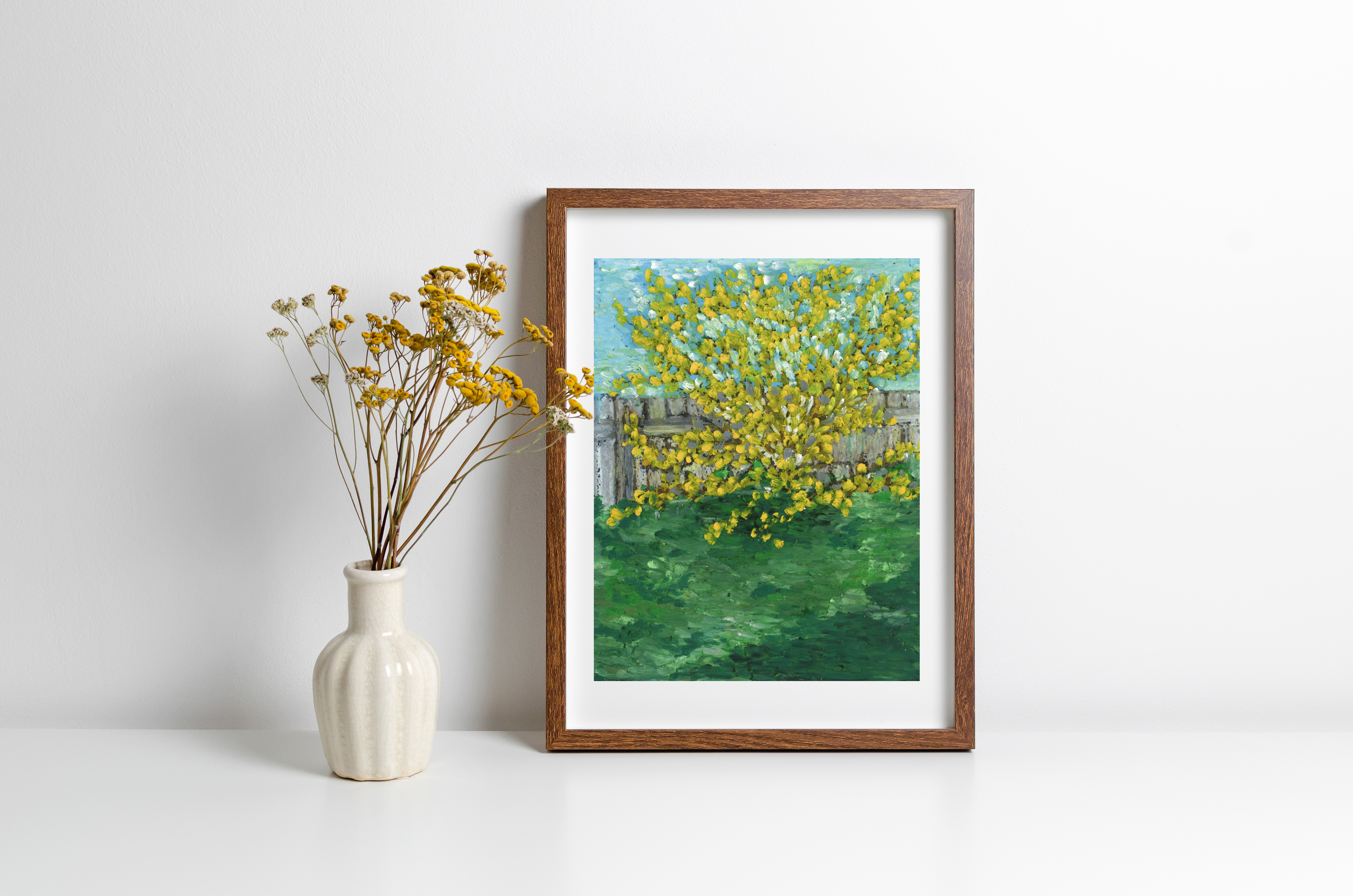 Backyard Summer is an on-demand print from an original oil pastel painting.