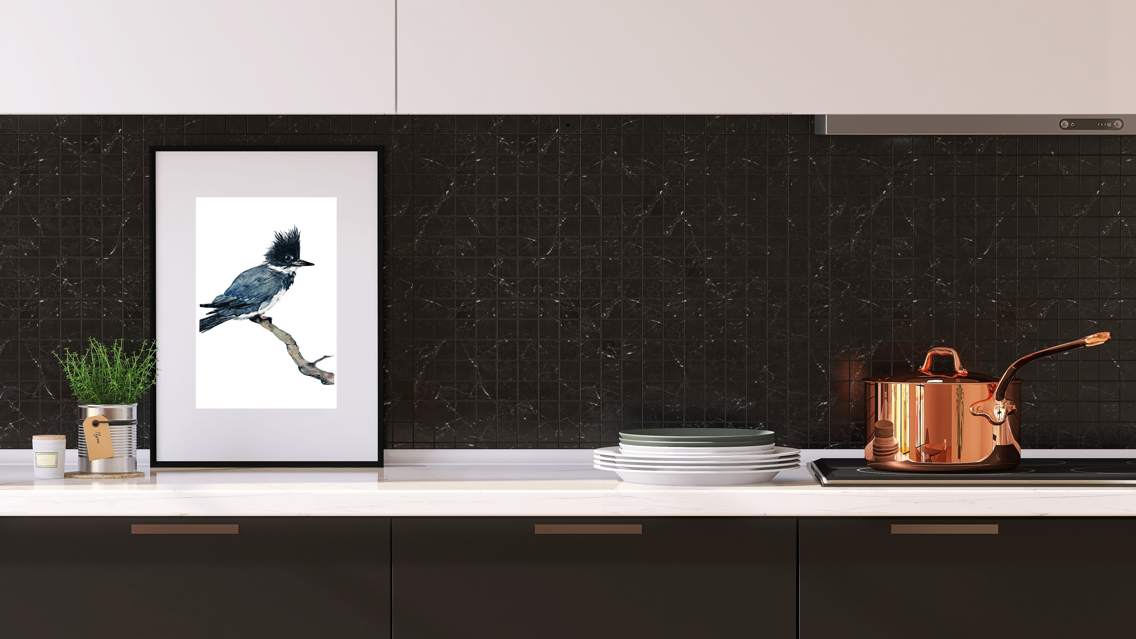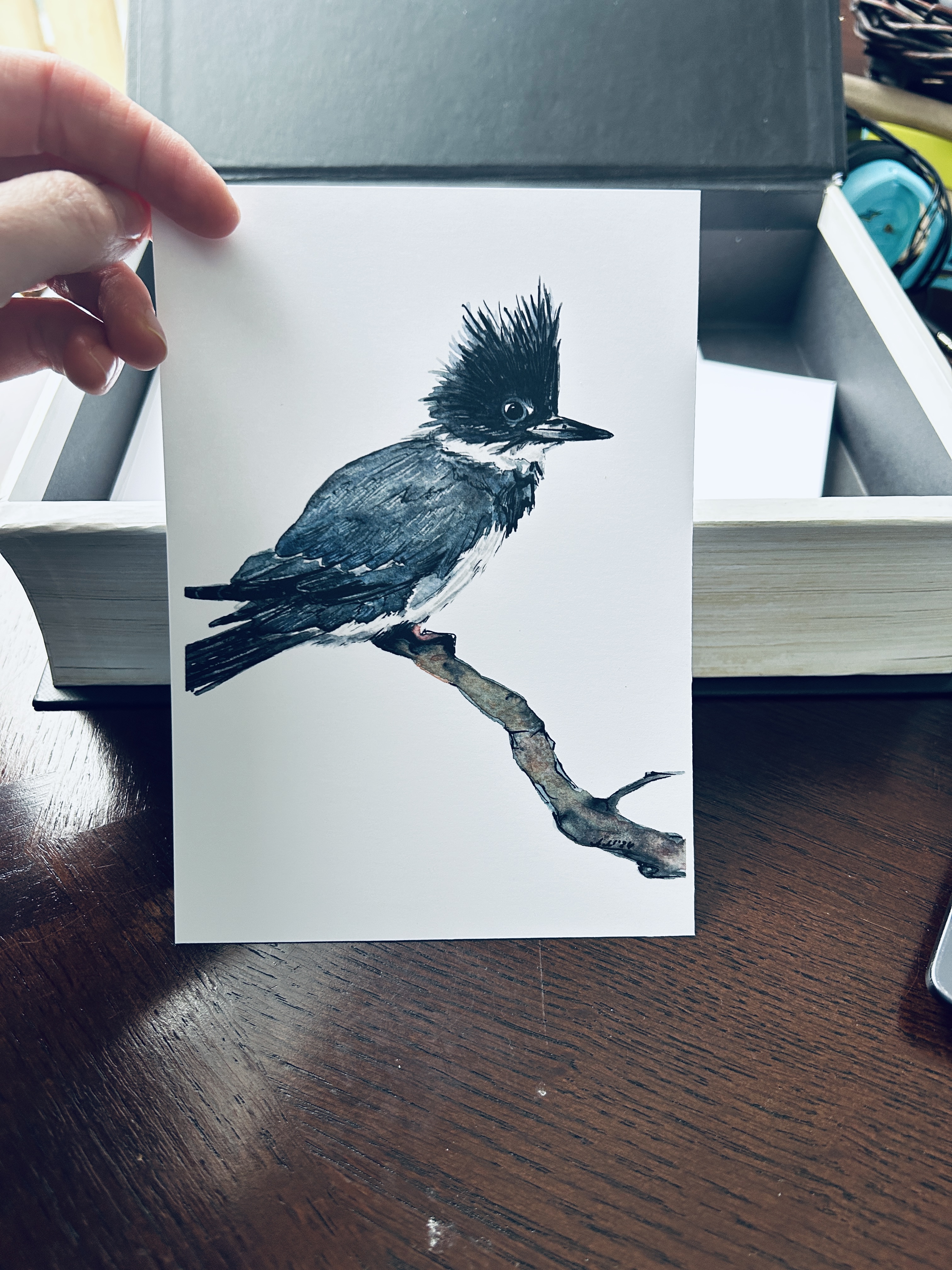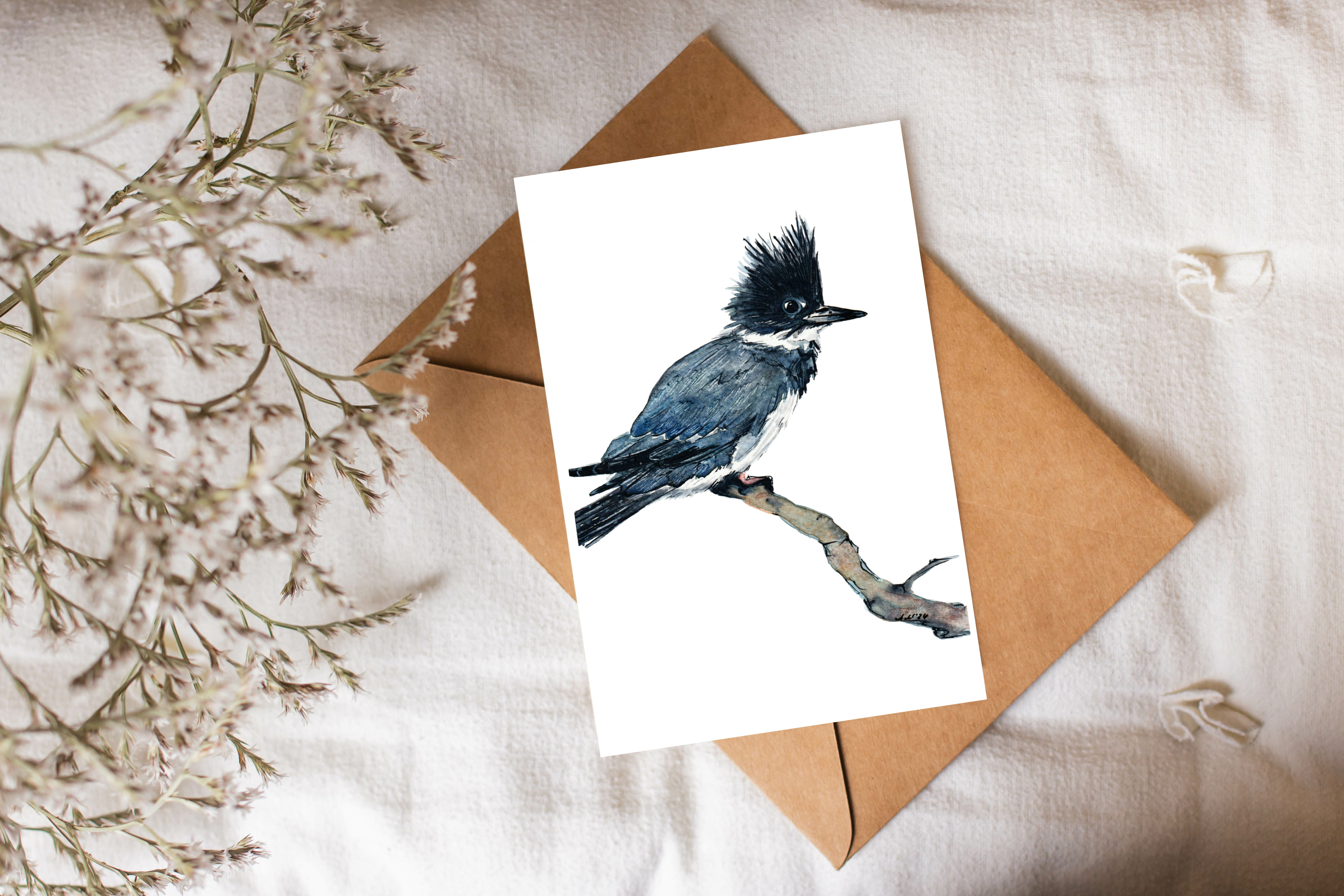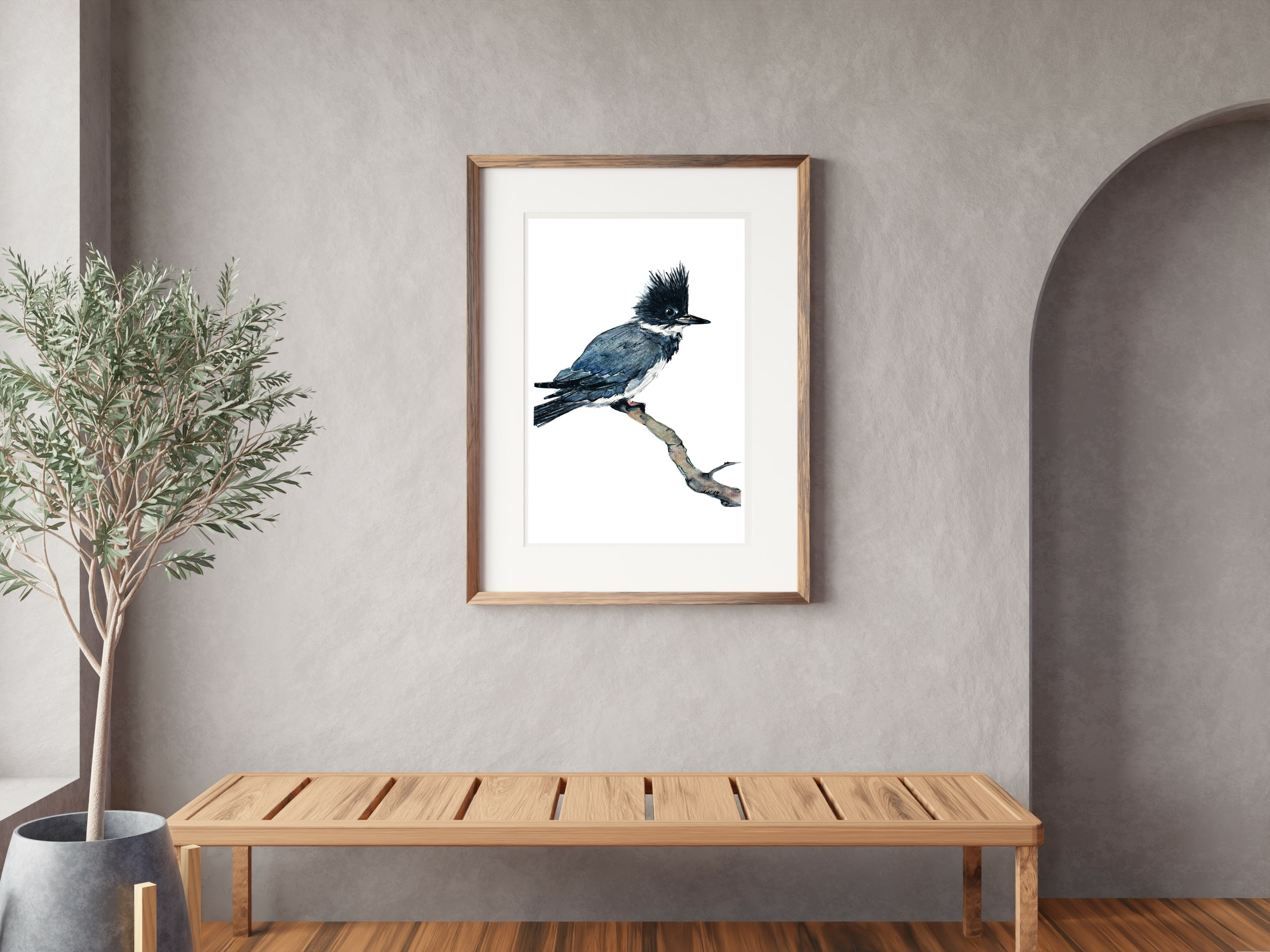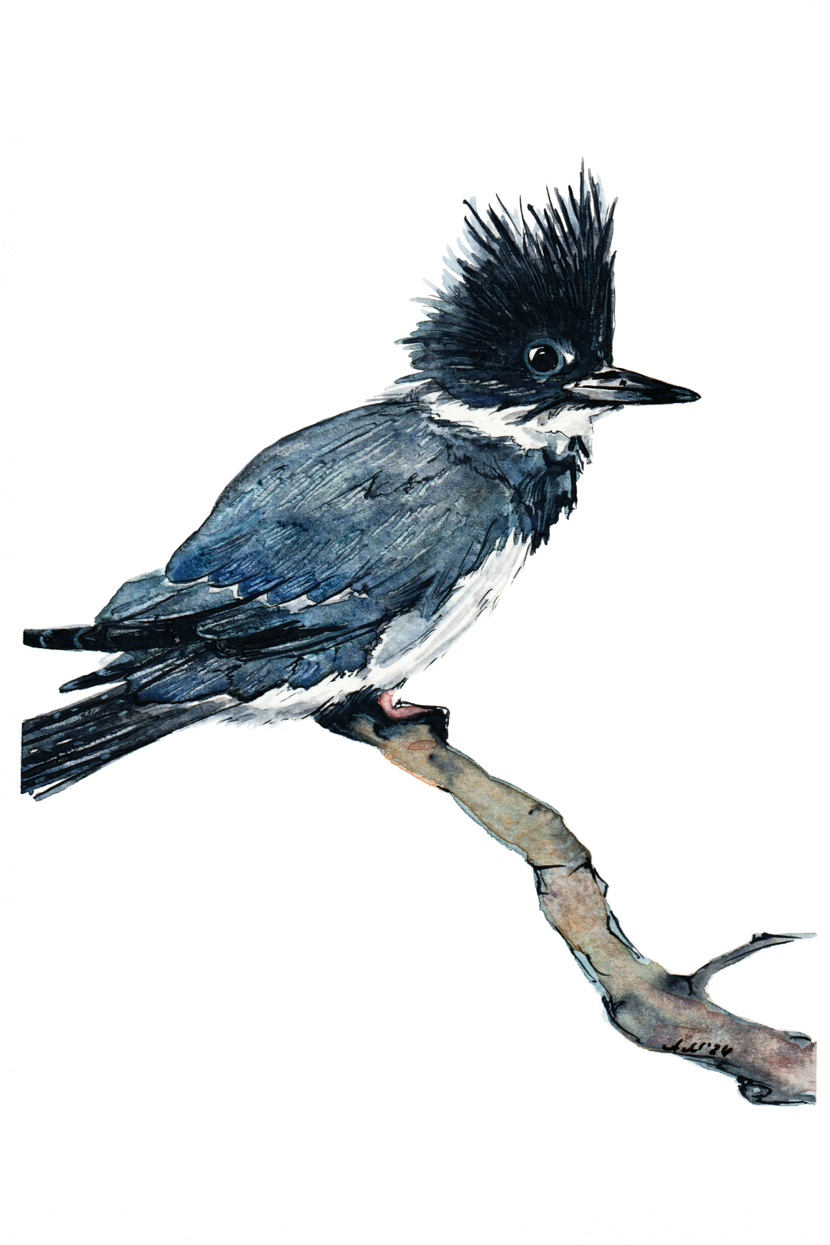 Belted Kingfisher is an on-demand print from an original watercolour/ink painting.