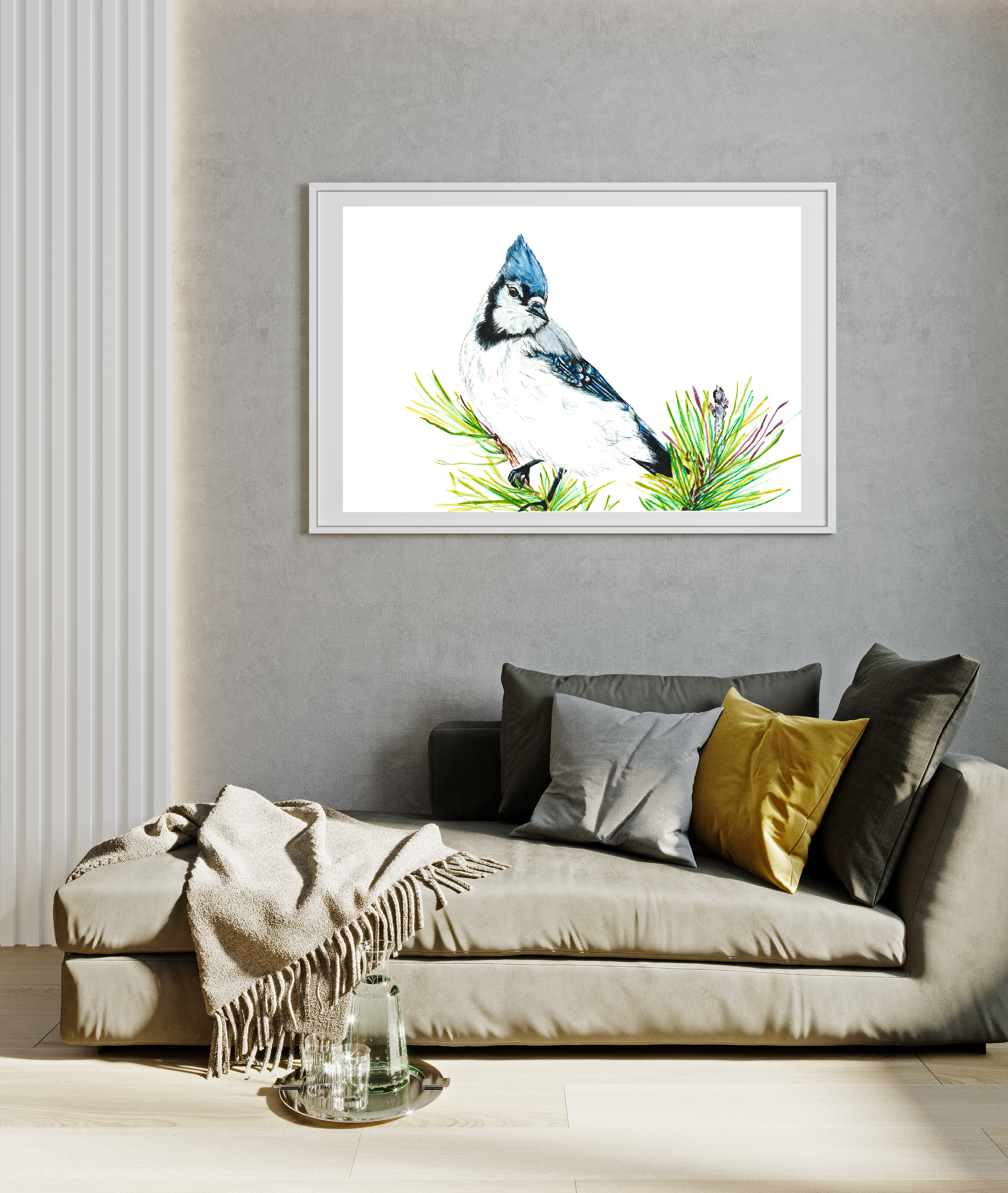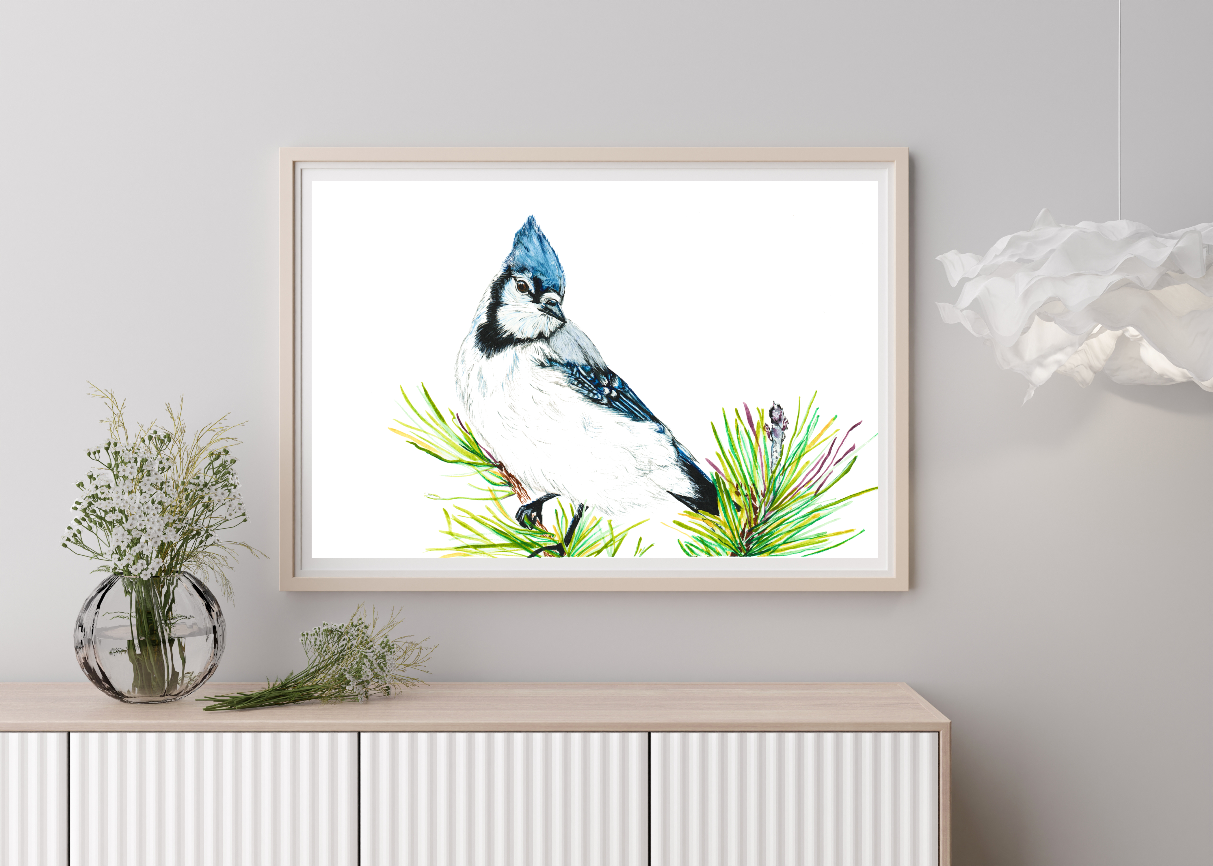 Blue Jay #2 is an on-demand print from an original watercolour painting.