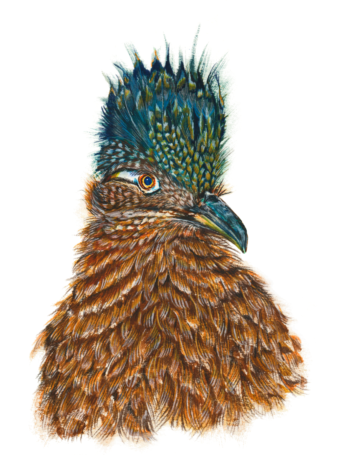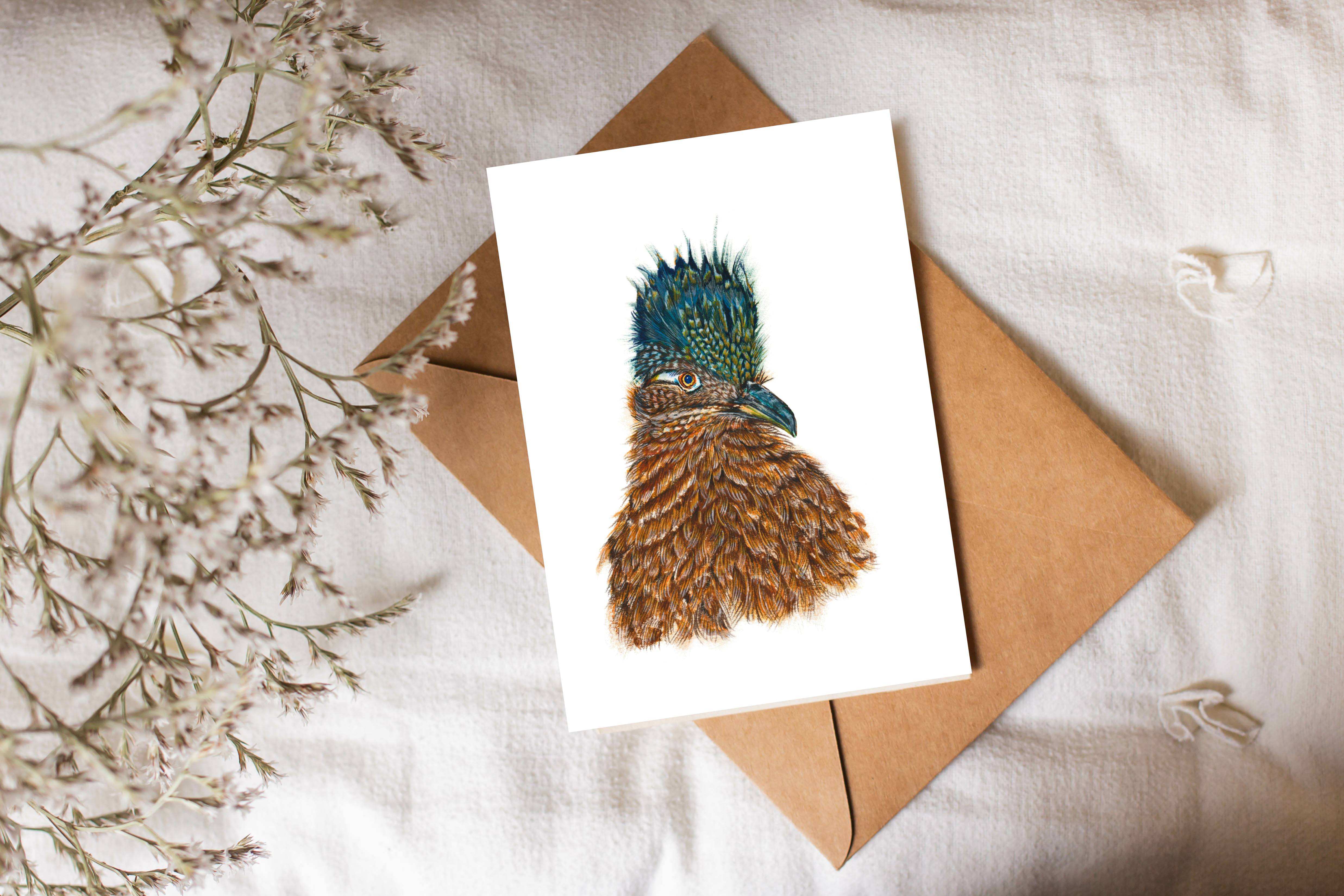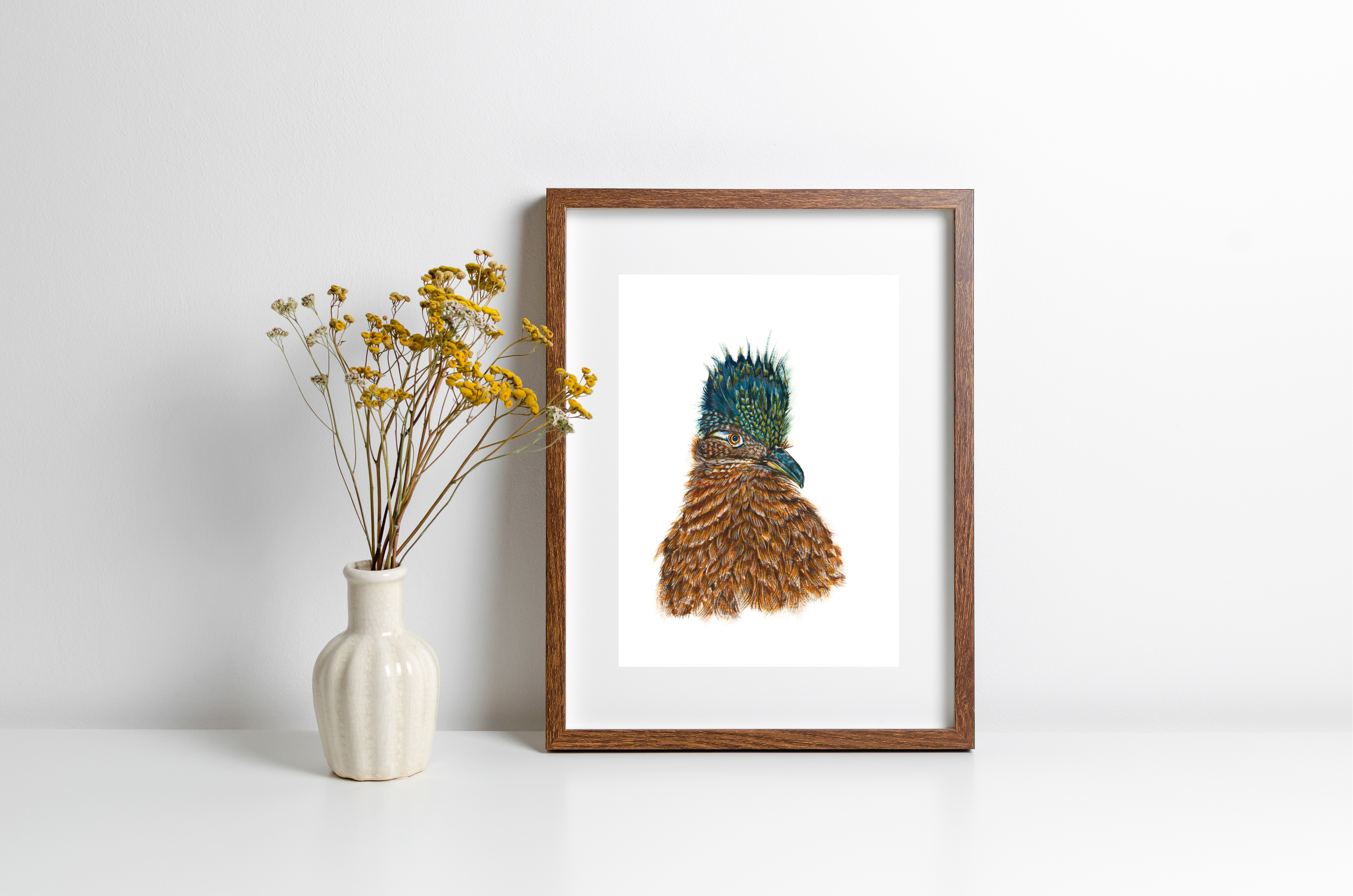 Greater Roadrunner is an on-demand print from an original watercolour/coloured pencil painting.