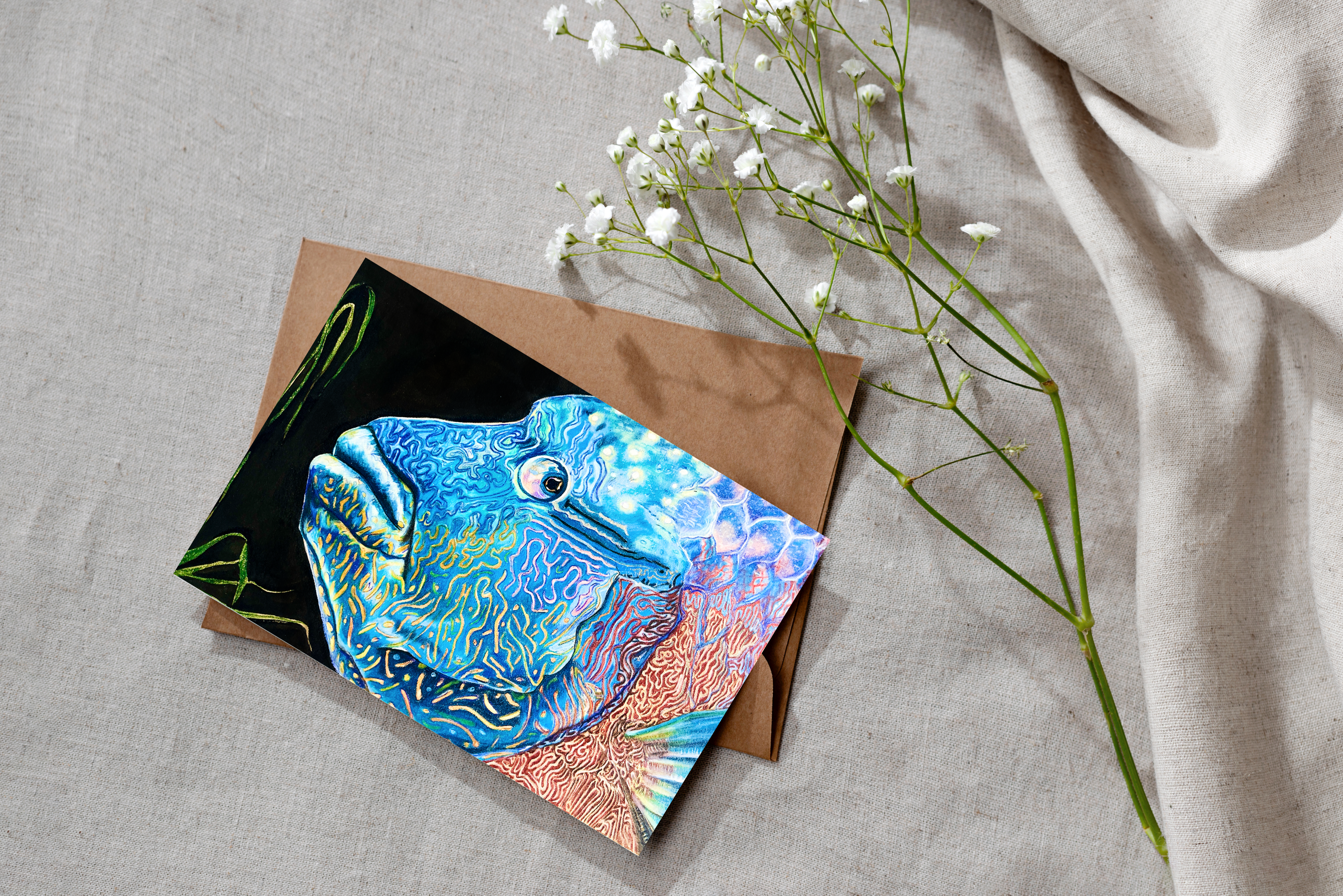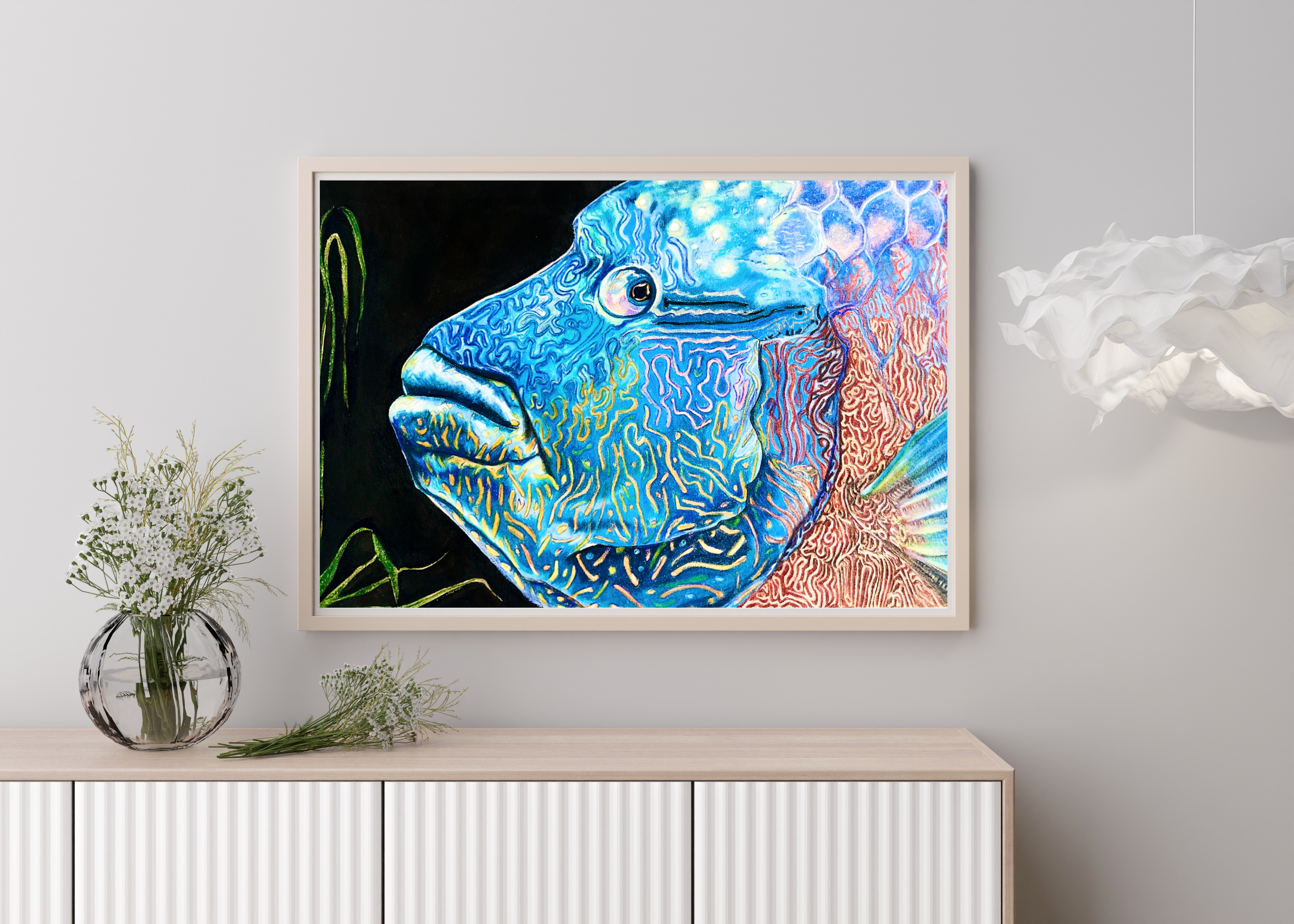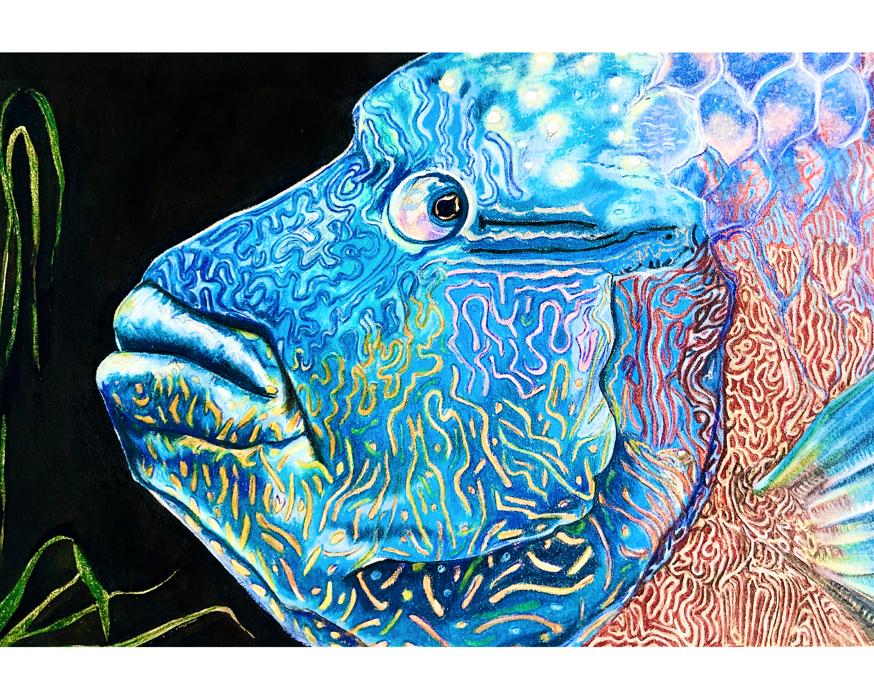 Humphead Wrasse is an on-demand print from an original watercolour/ coloured pencil painting.