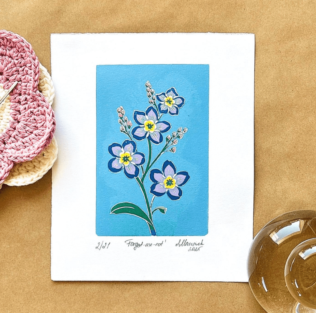 Forget-me-not reduction linoprint