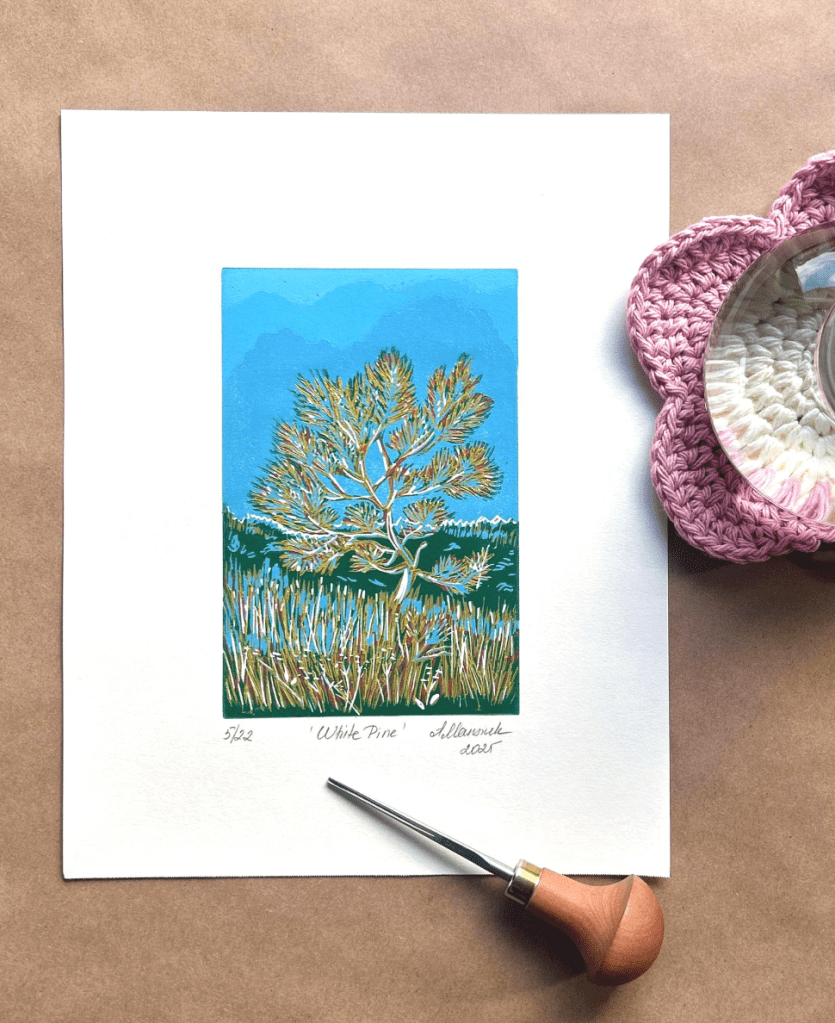 White Pine reduction linoprint