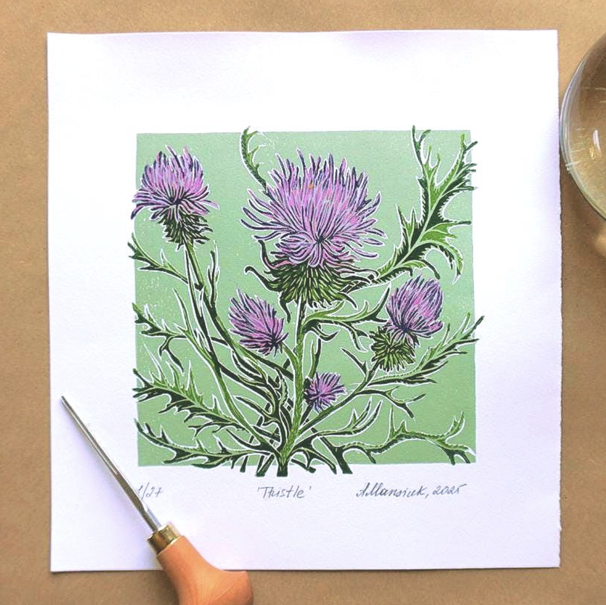 Thistle, reduction lino print