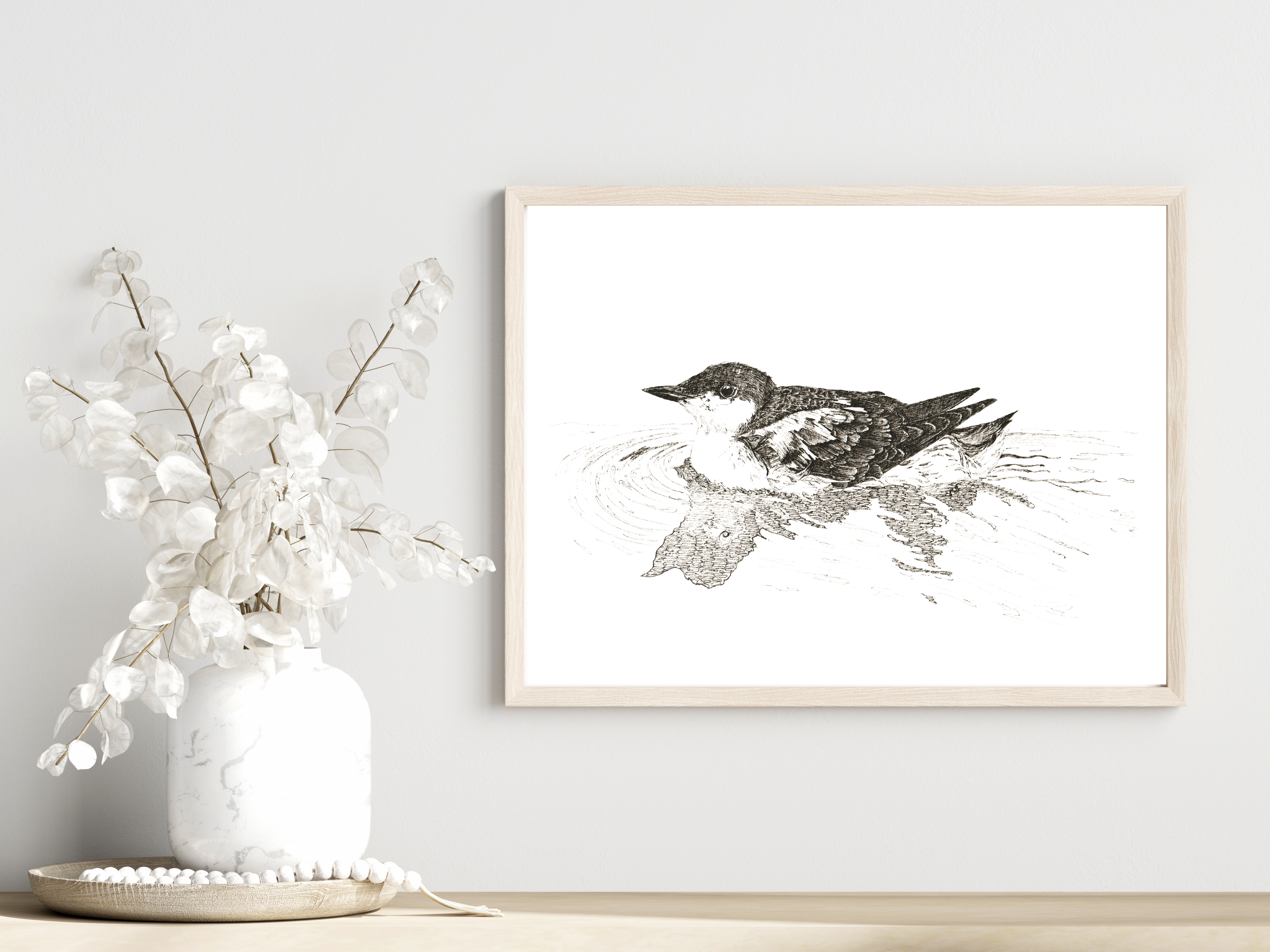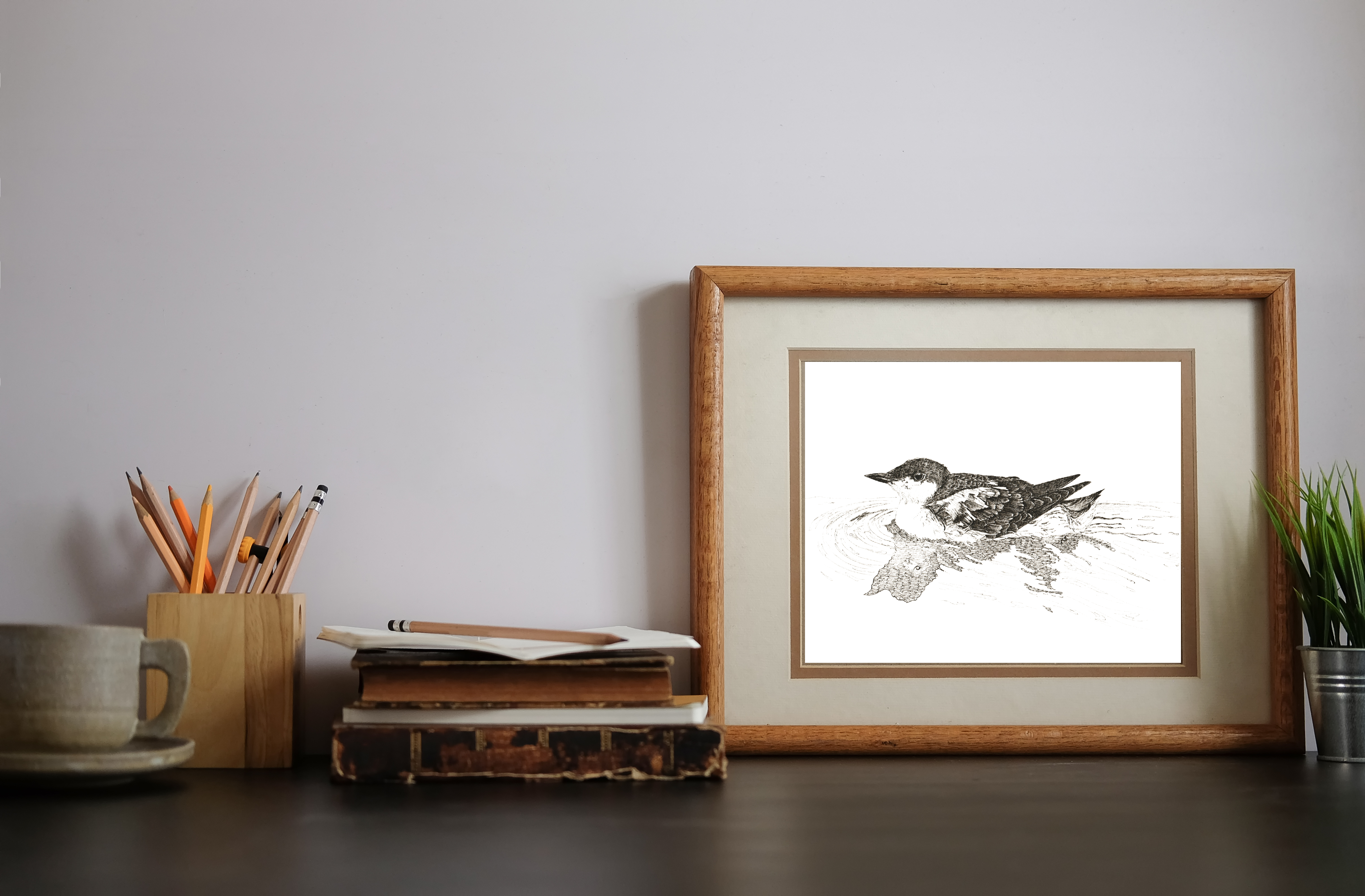 Long-billed Murrelet is an on-demand print from an original ink pen drawing.