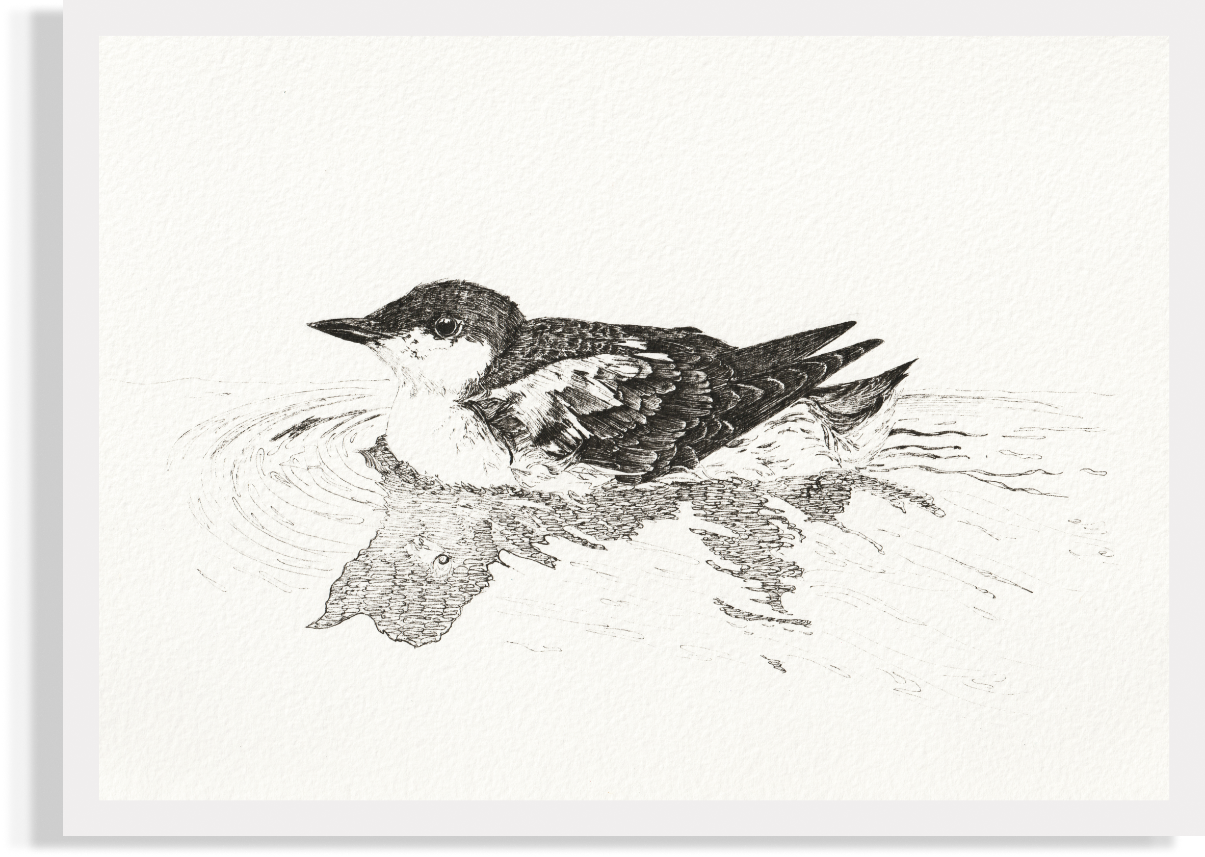 The painting was created only with a black drawing pen. After months of using vivid watercolour, I decided to switch to black and white illustrations and more refinement. As a reminder of the overwhelming reality that often conceals the essence under the bright plumage.