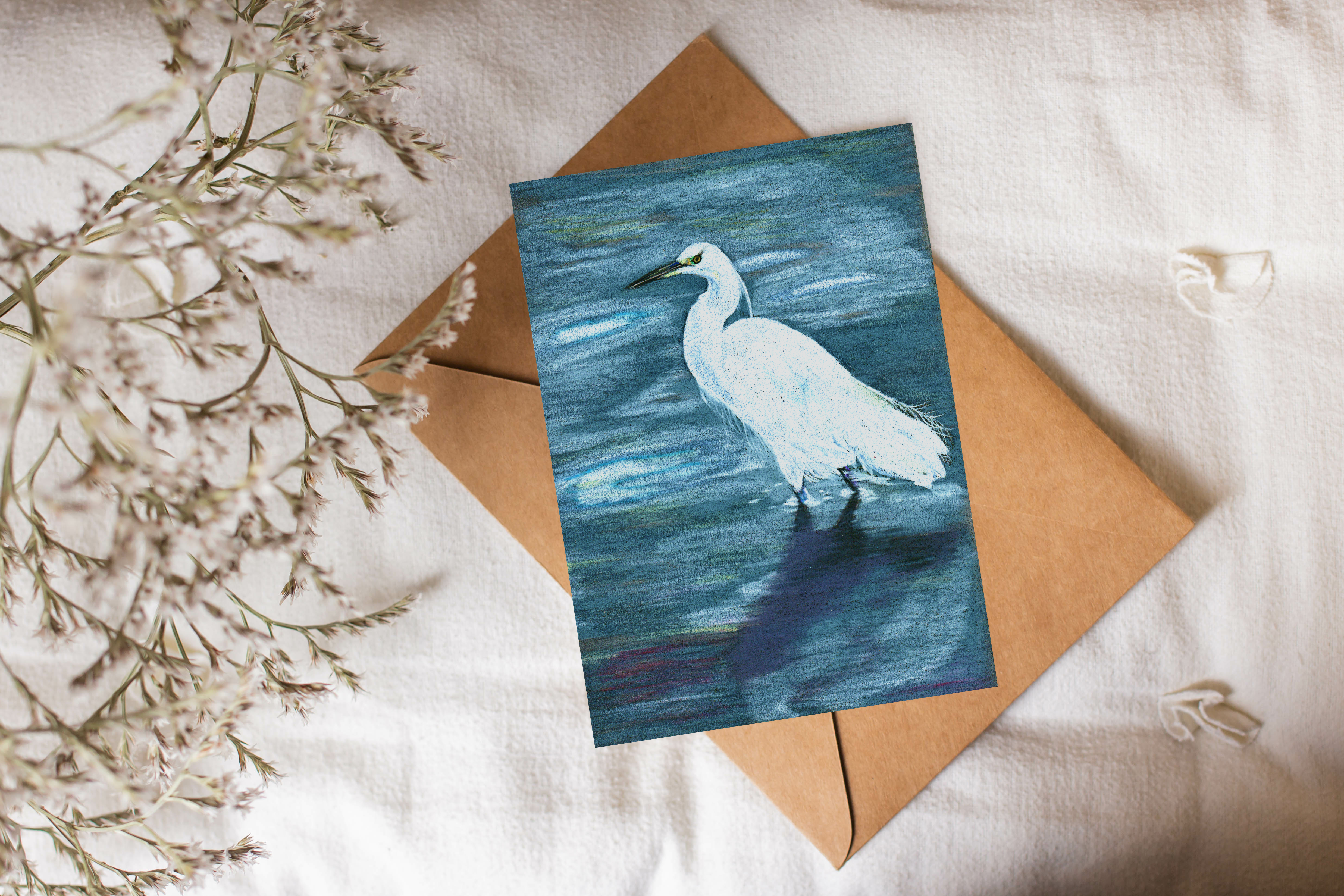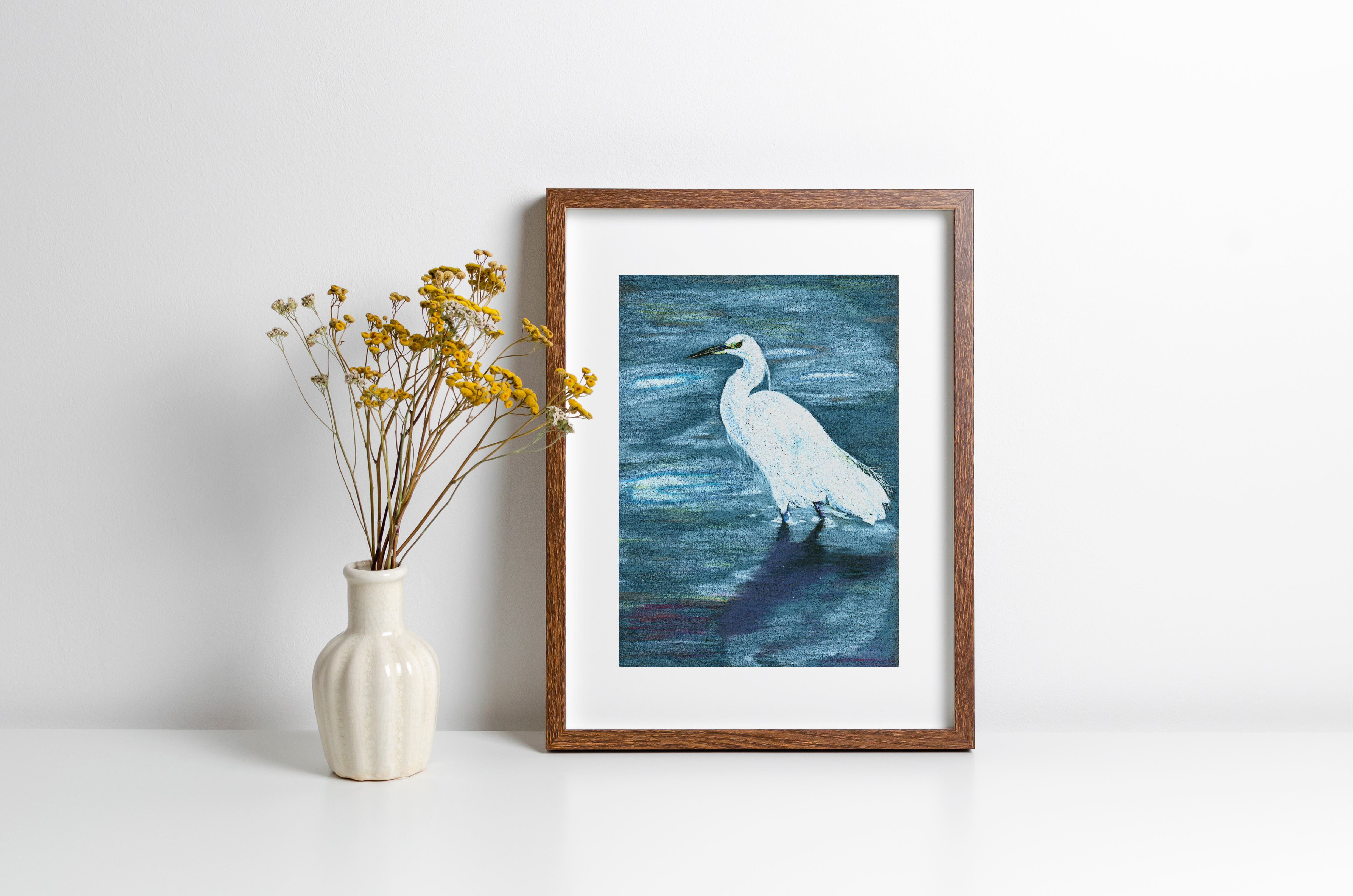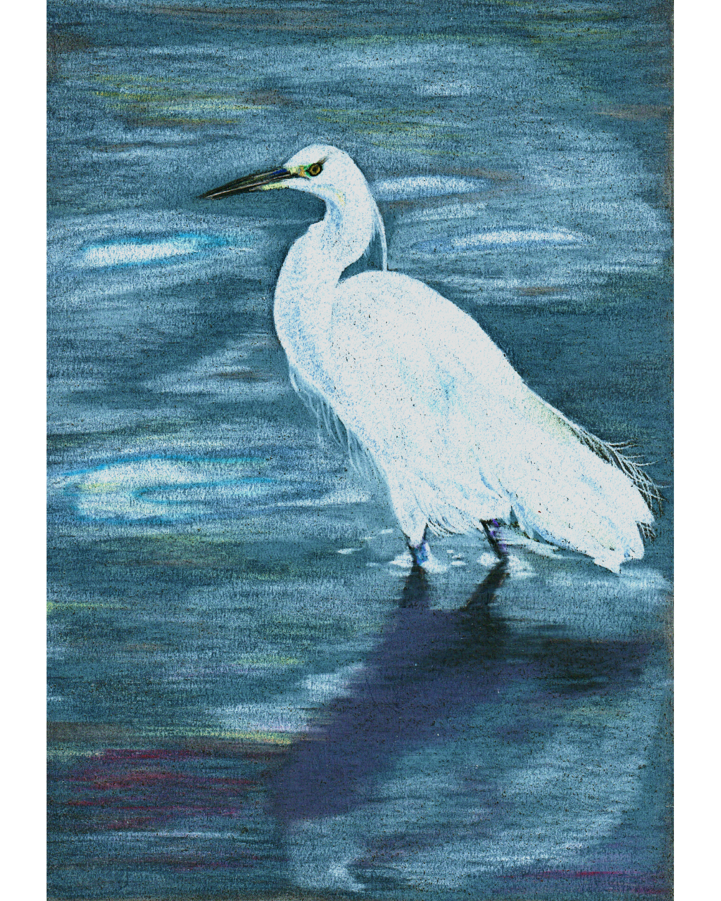 Midnight Egret is an on-demand print from an original coloured pencil drawing.