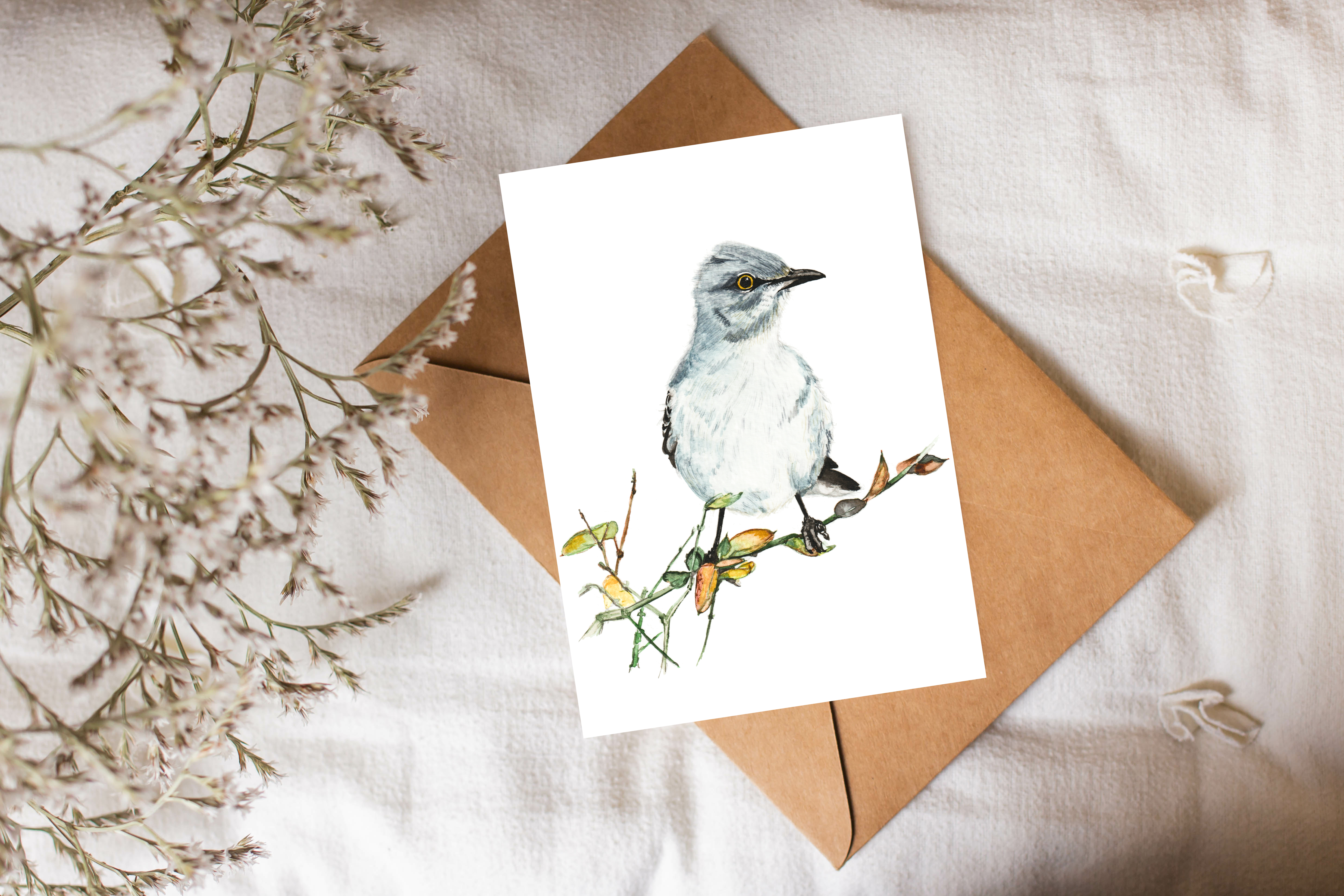 Northern Mockingbird is an on-demand print from an original watercolour painting.