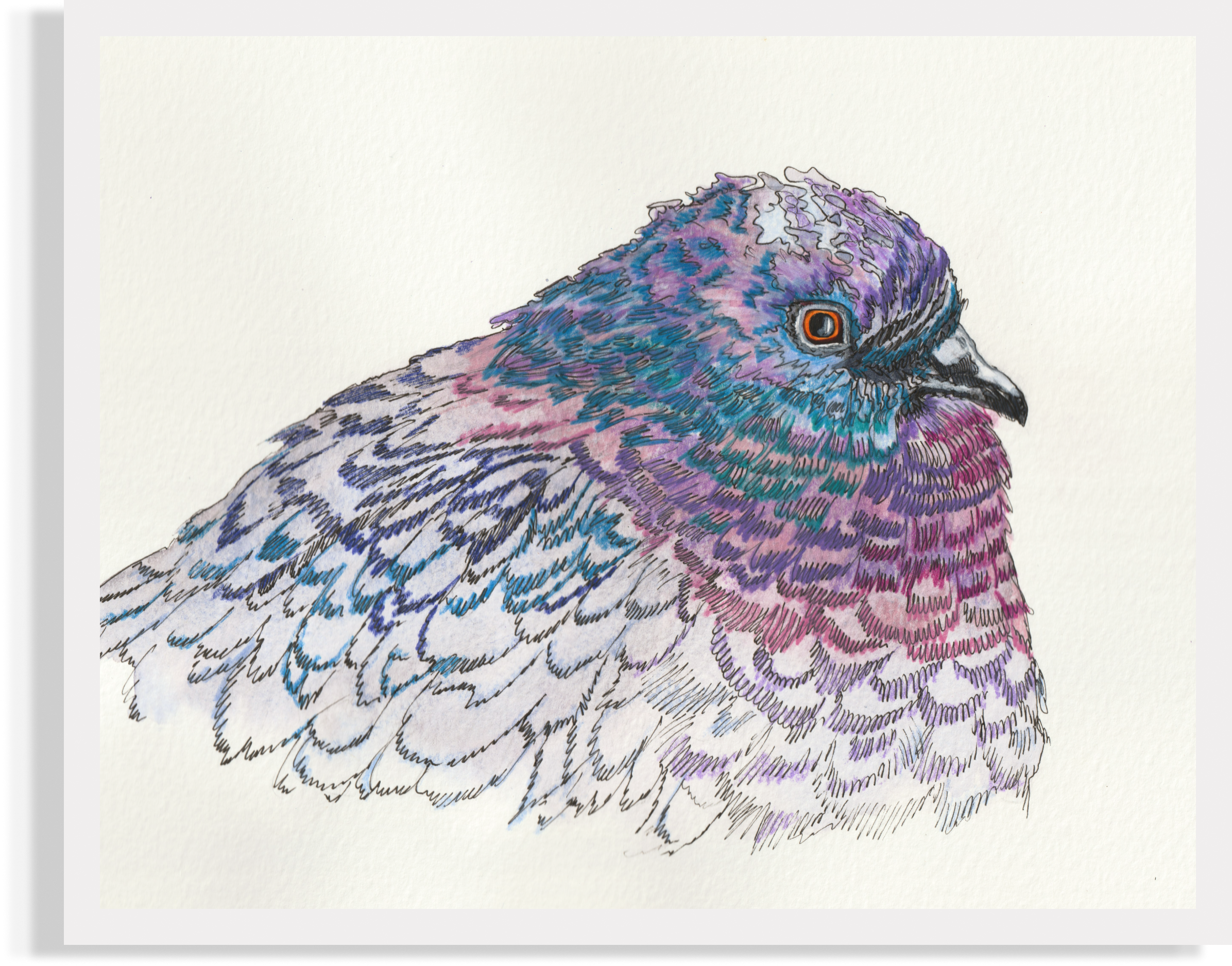 Time before, I left this bird mostly unnoticed, seeing it every day, along with sparrows and crows. But while drawing, I was enchanted by its iridescent neck plumage, which can be seen in only a few species, such as a hummingbird or mallard.