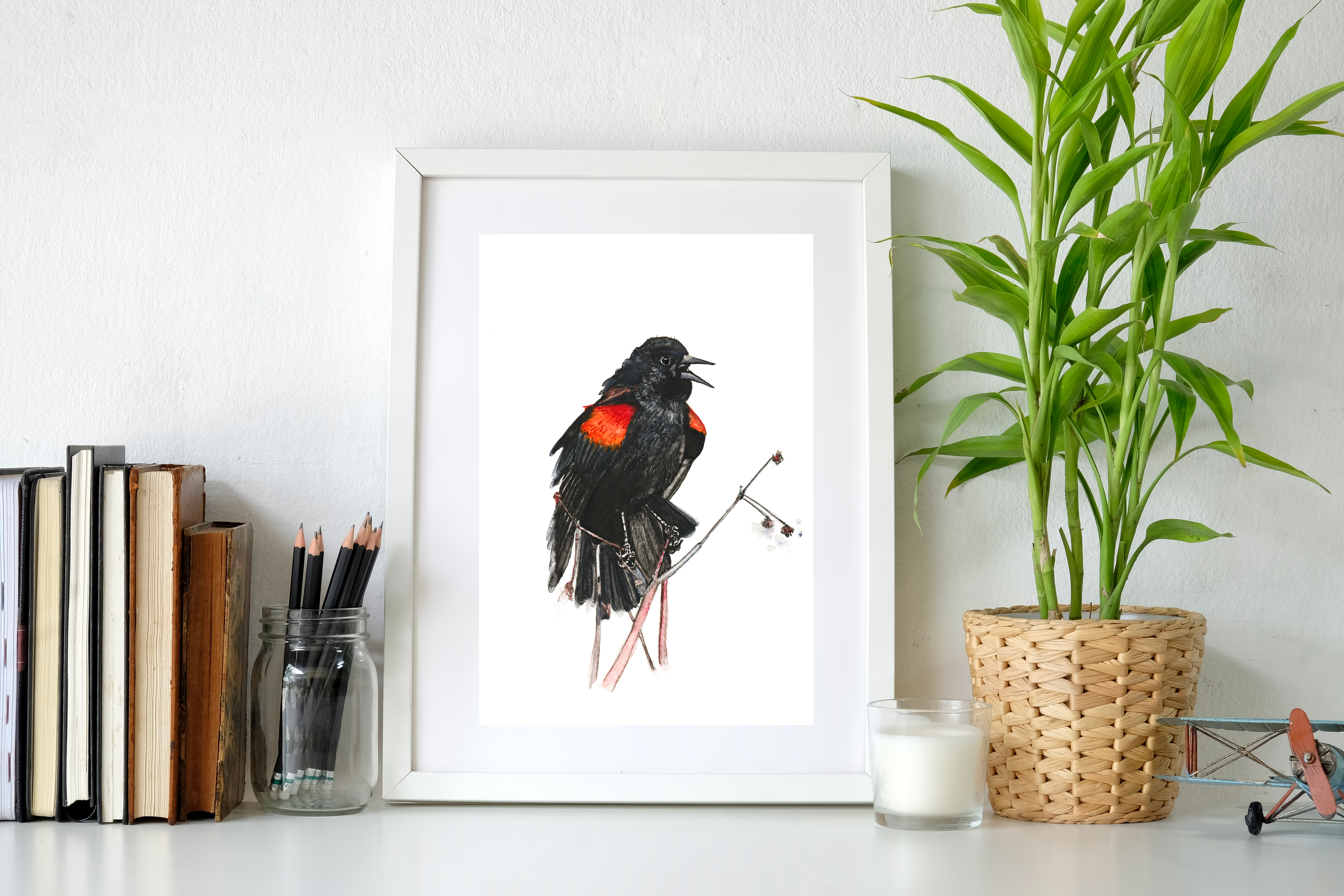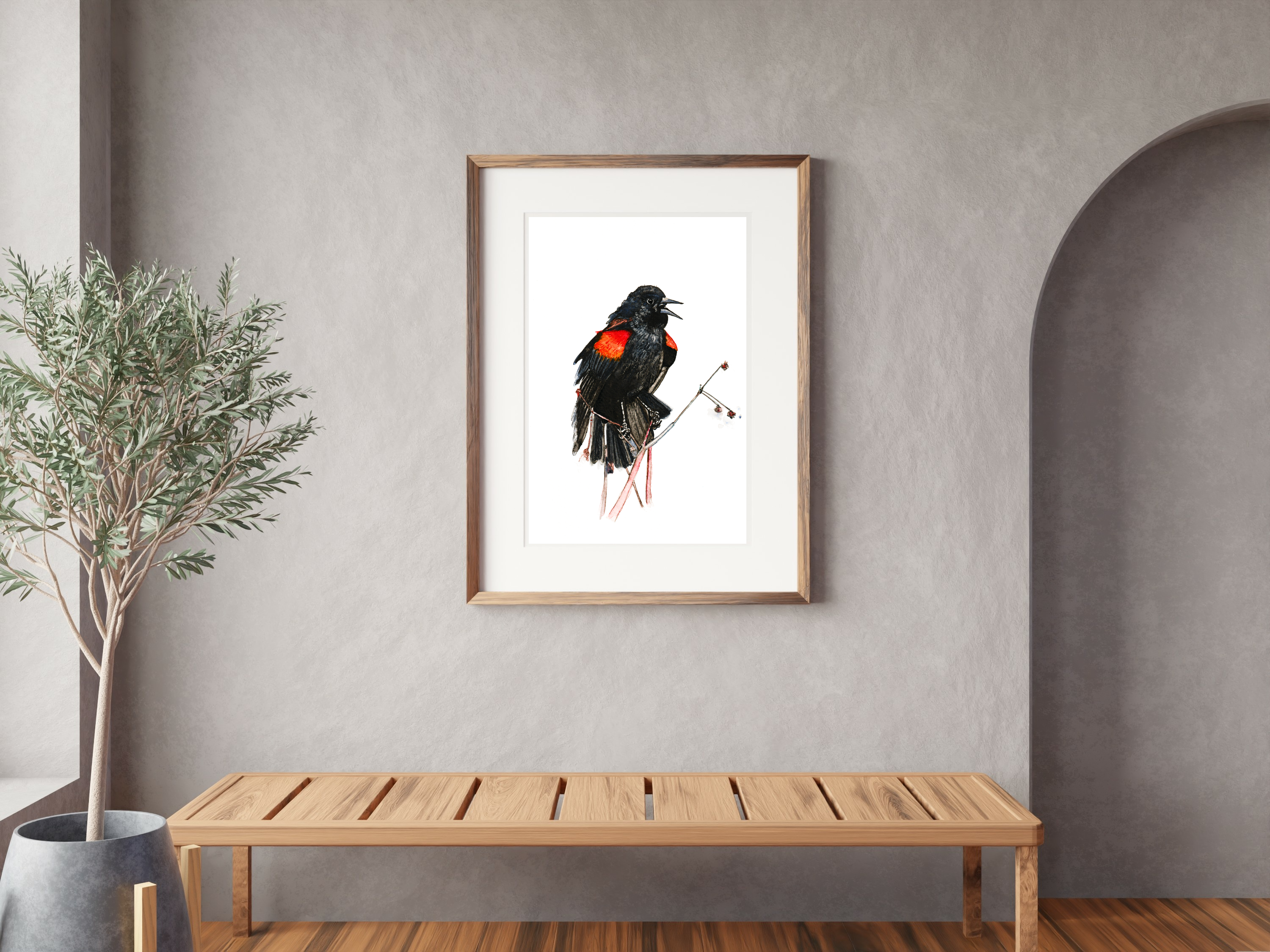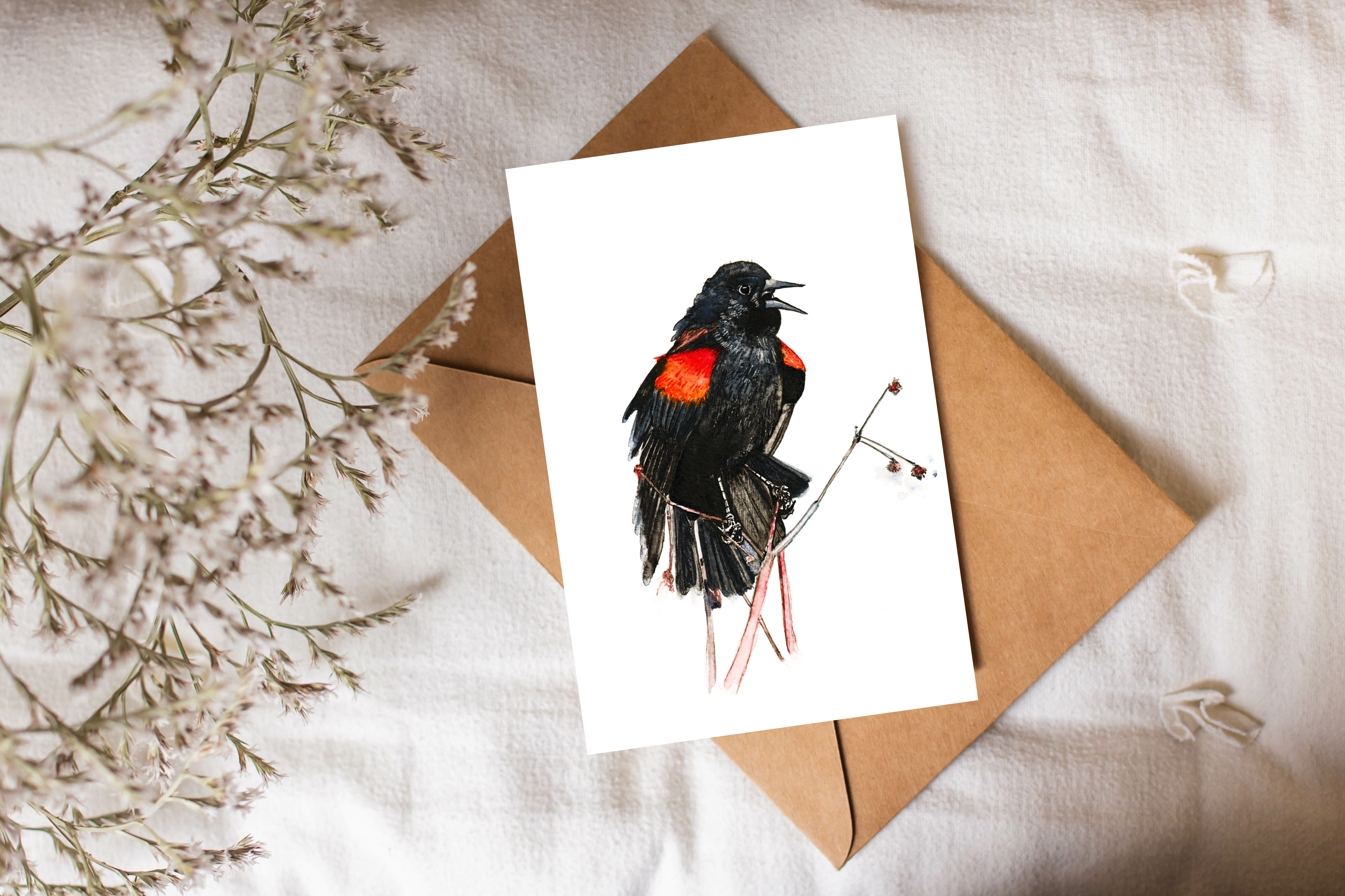 Red-Winged Blackbird is an on-demand print from an original watercolour painting.