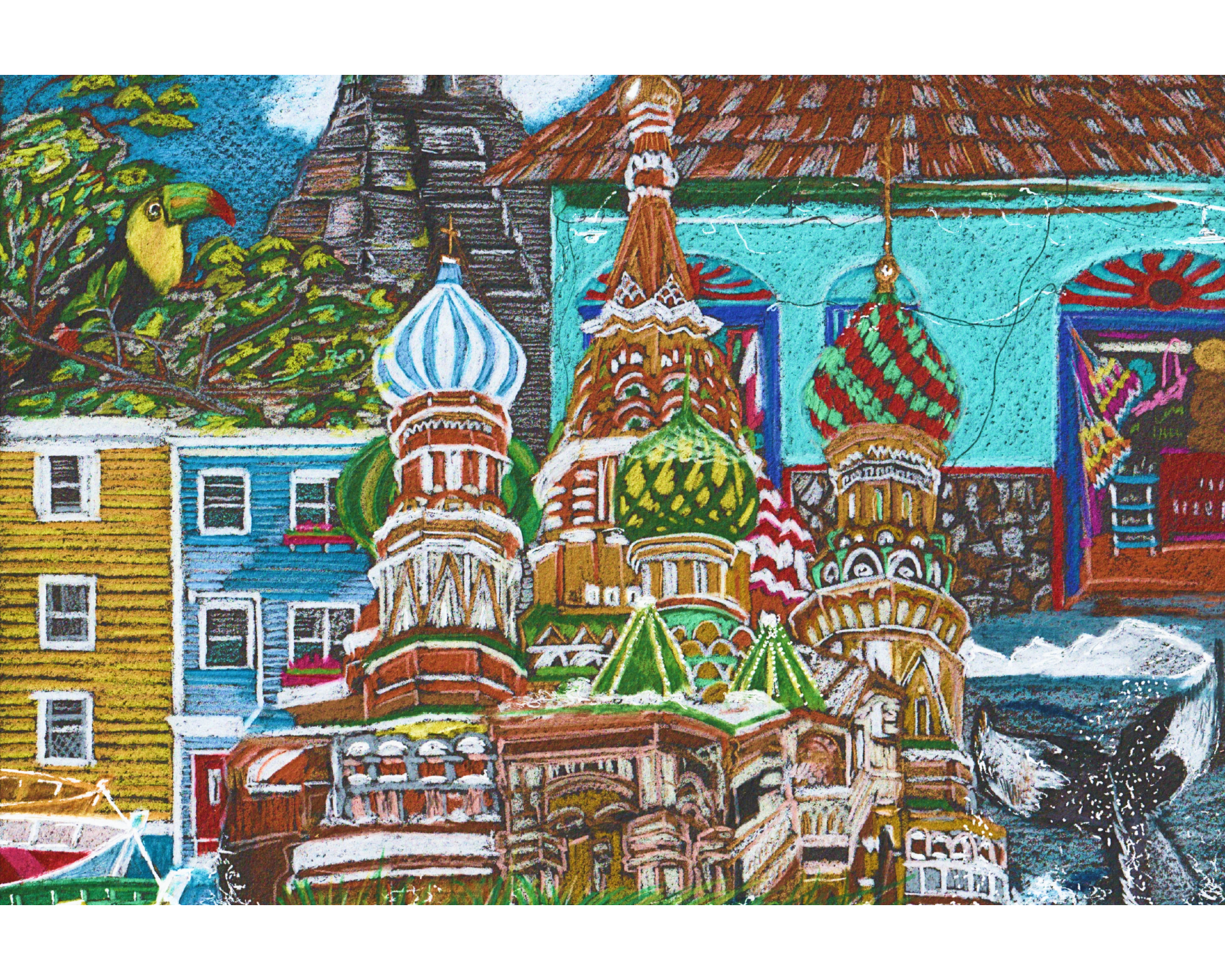 Relocating Experiences is an on-demand print from an original coloured pencil painting.