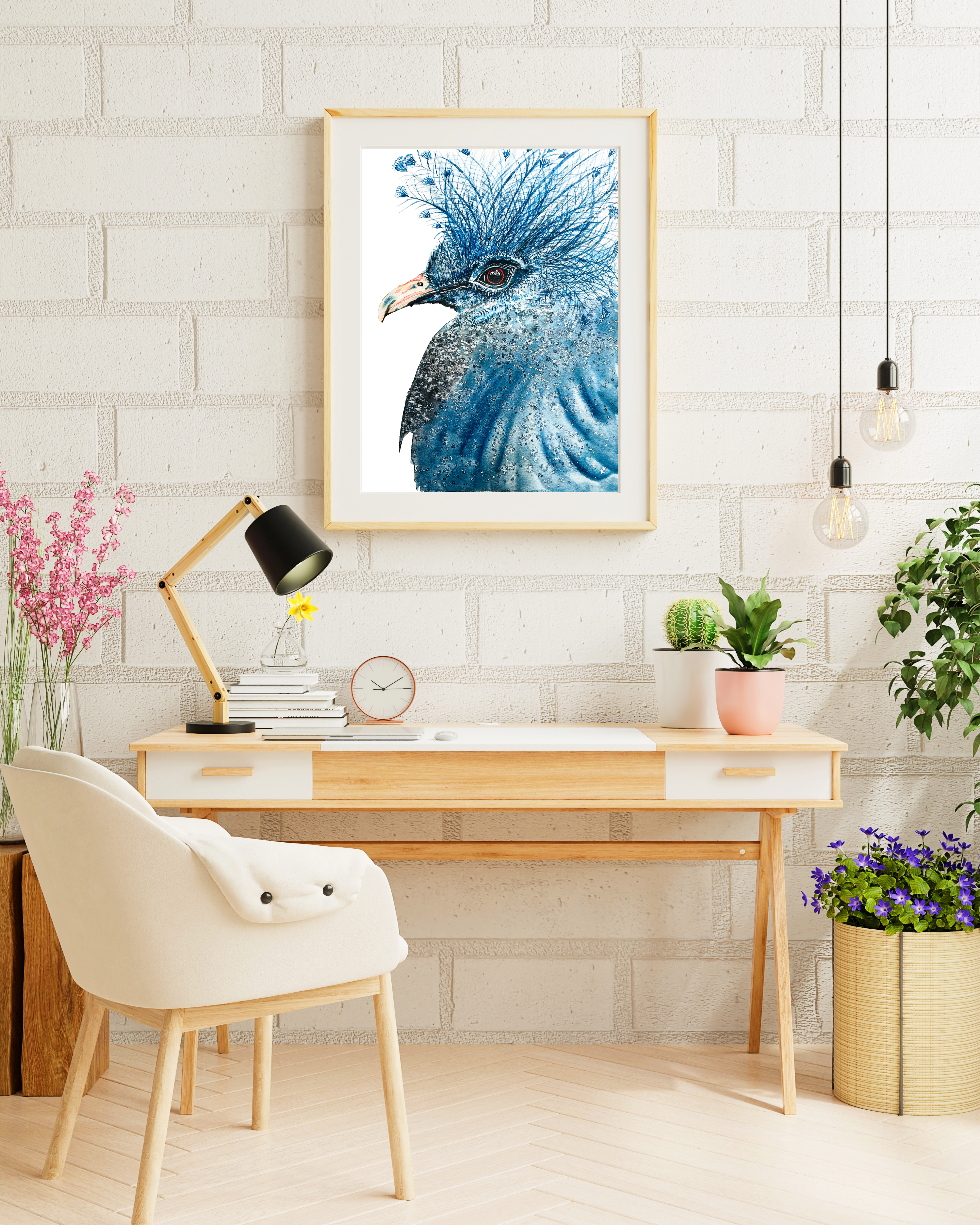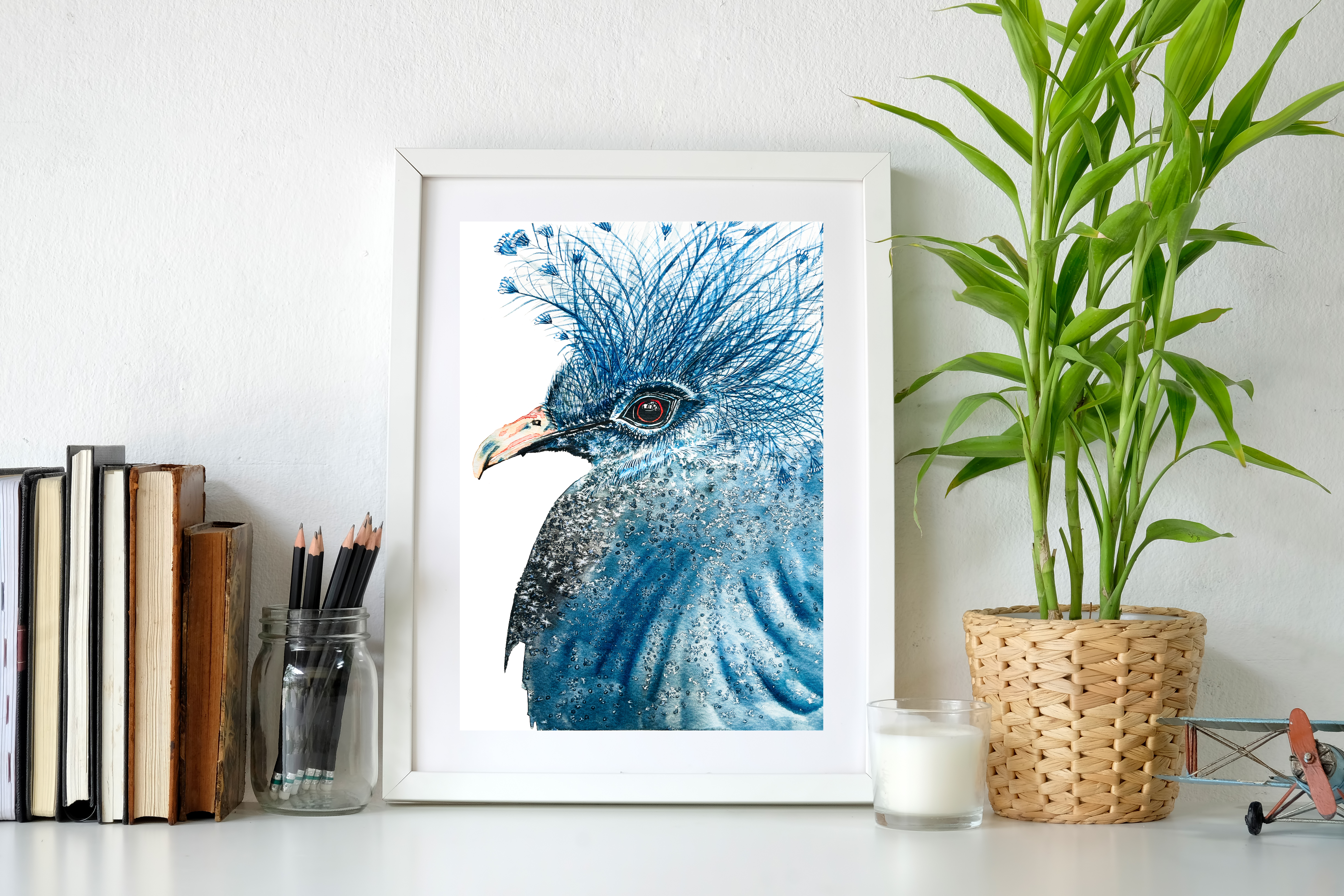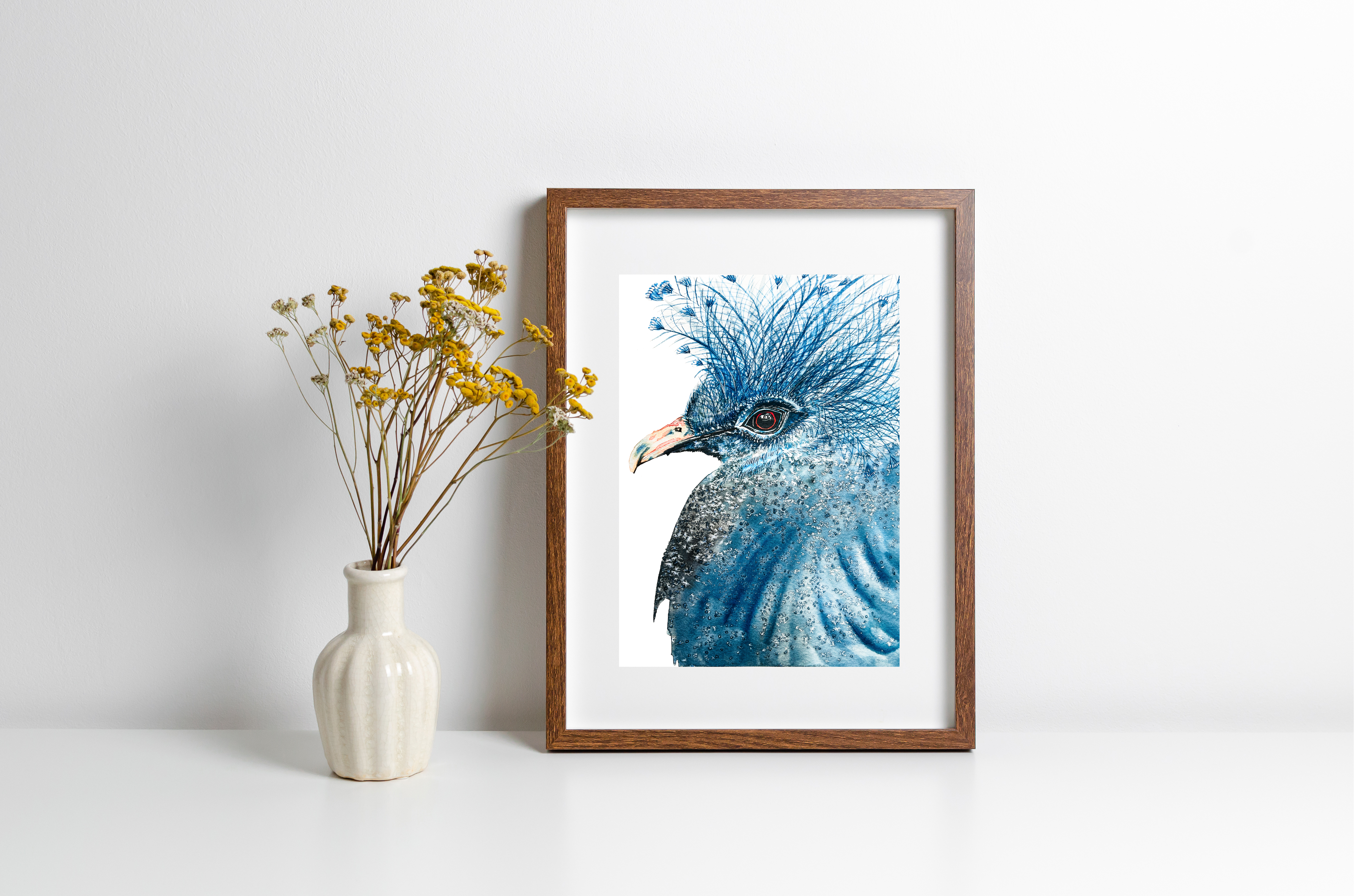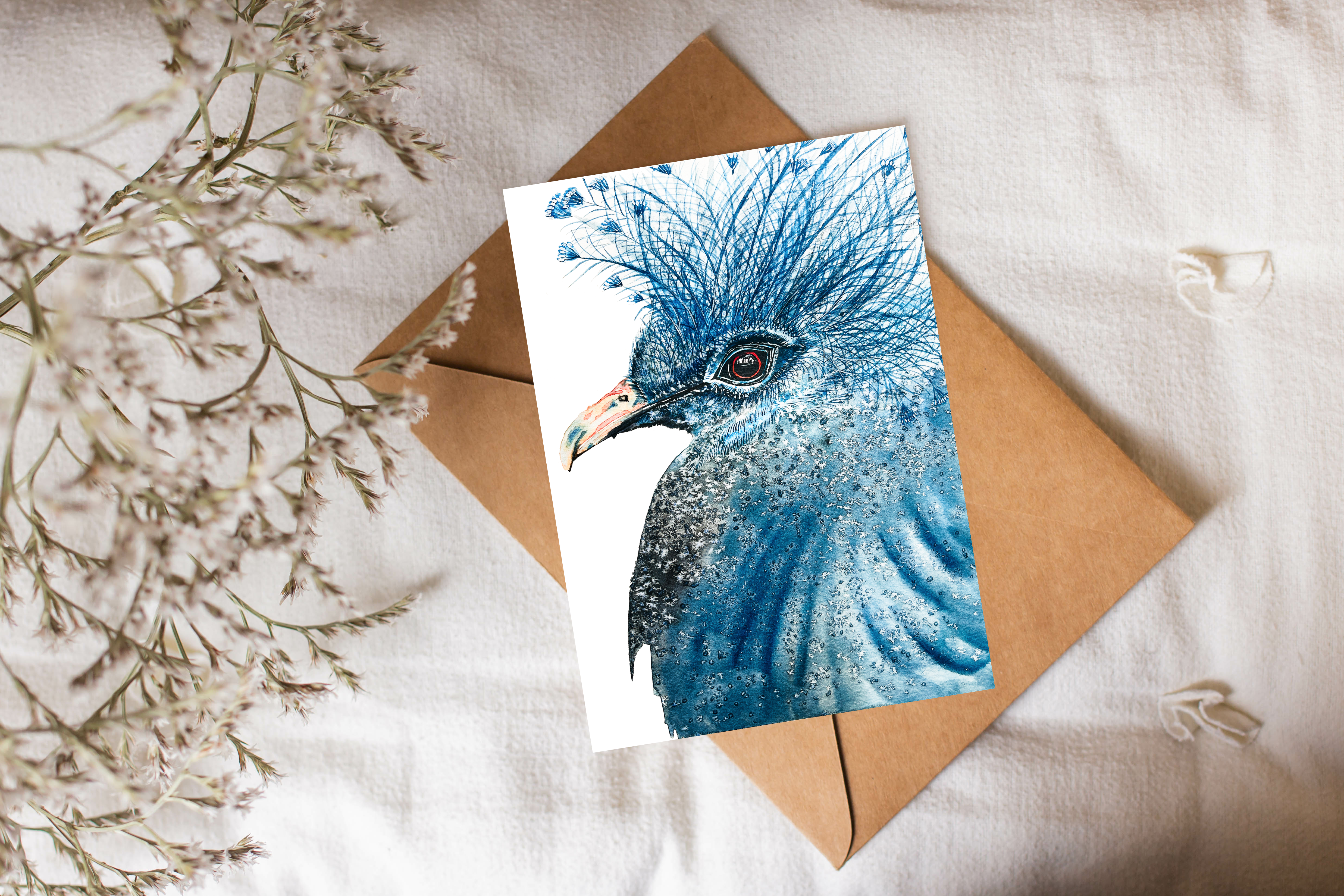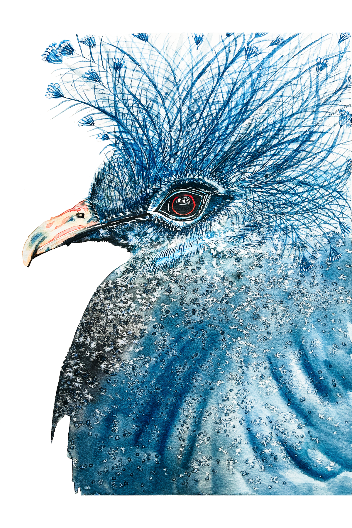 Victoria Crowned Pigeon is an on-demand print from an original watercolour painting.